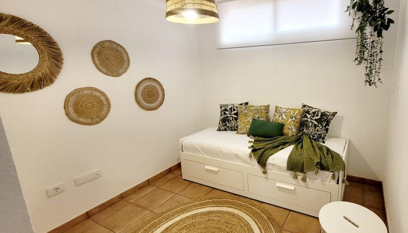 Appartement de 2 chambres a coucher, 1 salles de bain, situé au premier étage au-dessus des jardins et de la piscine, avec cuisine ouverte et complètement équipée, buanderie pour la machine a laver, meublé, garage privé et cave. En très bon état! N'a jamais été loué! Zone residentielle très tranquille.
